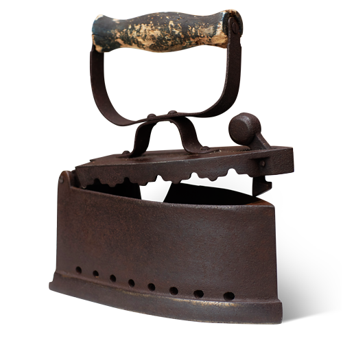 К слову, привычные нам предметы быта, например утюги, существовали и тогда, но совсем другие. Это были большие тяжелые чугунные приспособления. Чтобы управляться с чугунным утюгом, нужна была не только физическая сила (привет, фитнес-клуб!), ведь вес его достигал 10 кг, но и сноровка — утюги были разной конструкции: литые, цельные, которые нагревали на печи, а затем гладили, со съемной ручкой или «разъемные» — с горящими углями внутри, которые и передавали тепло. Важно было одно — поддерживать температуру, не давать утюгу остыть.